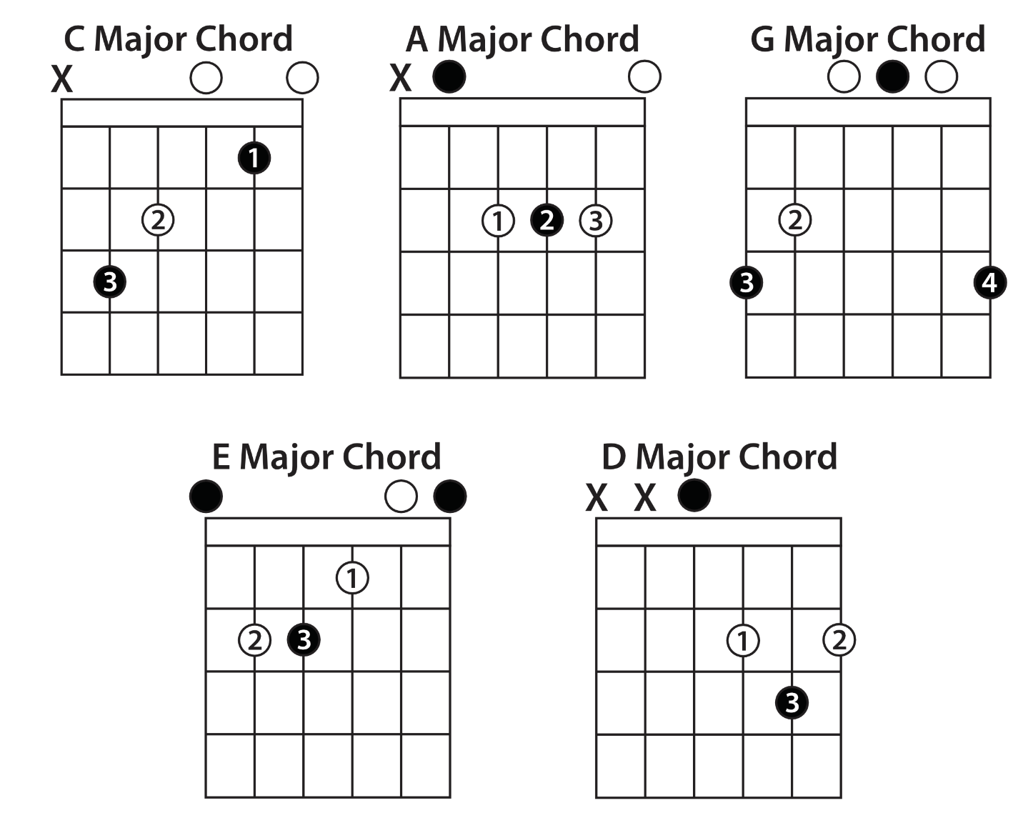 For instance, the C major chord can be played in the following ways: